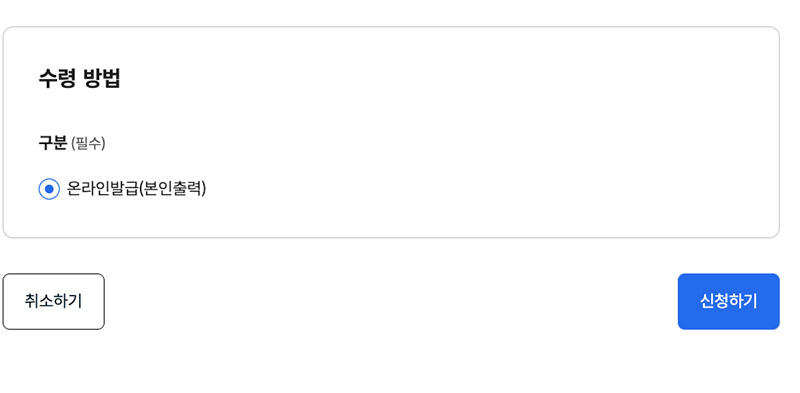 ► 본인 및 대리인 신청 가능 → 온라인(정부24)발급 신청은 본인만 가능
