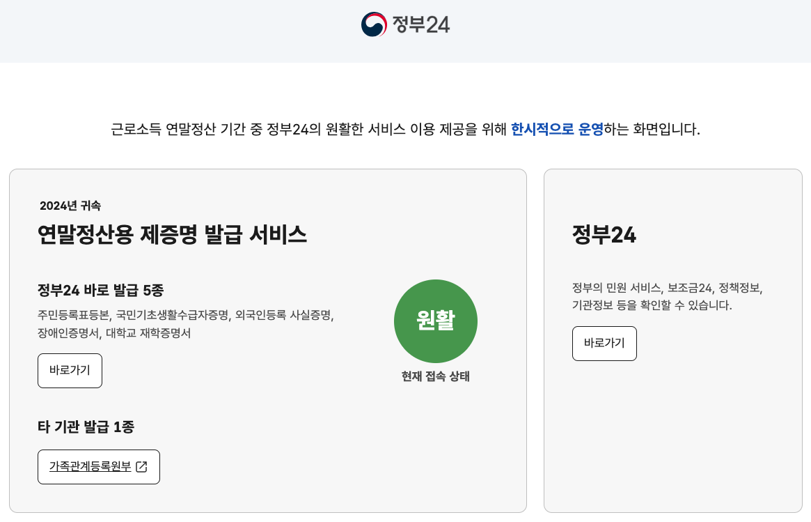 - 운영 기간 : 연말정산 기간에 맞춰 한시적으로 운영되므로, 해당 기간 내에 서류를 발급받는 것이 좋습니다.