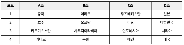 - 각 조 상위 2개 팀이 8강에 진출